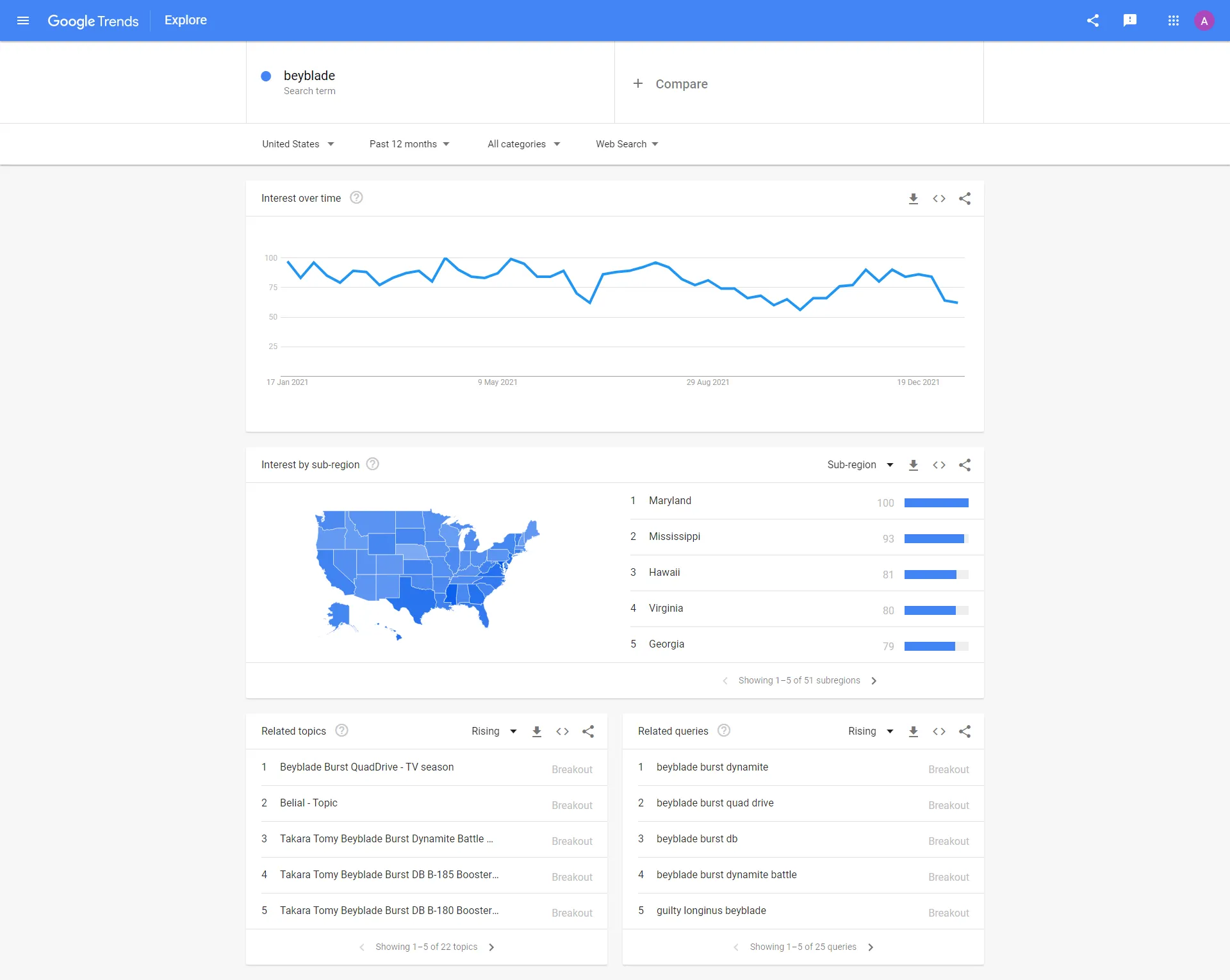 Here’s an example of Google Trends showing how ‘beyblade’ has been trending over time: