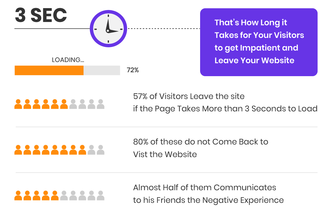 The attention span of users today is short - you have about 10 seconds before they click away. As a rule, you should ensure that your website loads in the shortest time possible.